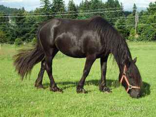 She lost her foal for 2006. We suspect cherry tree wood caused a late abortion. Caitlin is now residing at her new home, Stirling Ridge Farm. She is missed here, but I look forward to hearing about and watching. Caitlin had a solid black filly for Jennifer on 26 May 2007. Her name is StirlingRidge Marguarette or Margy and she joined our herd summer of 2009.